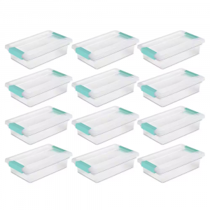 0.3 Qt. Storage Box Small Clip Tote Container with Lid in Clear (12-Pack)